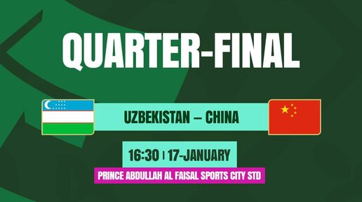Сборная Узбекистана сыграет с командой Китая в четвертьфинале Кубка Азии U-23 по футболу. Матч состоится 17 января в 16.30 по ташкентскому времени.