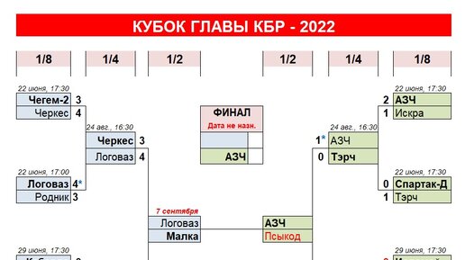 Кубок Главы КБР по футболу – это турнир, в котором играют только представители высшего республиканского дивизиона. Было время, когда в борьбе за этот трофей допускались все команды, причем все команды из «вышки» зрячим жребием разводились между собой. Те матчи заканчивались, как правило, с крупным счетом в пользу представителей элиты. И уже в 1/8 финала оставались лишь те, кто в новой системе стартует с той же стадии. Сейчас жребий «слепой», поэтому терский «Тэрч» и баксанская «АЗЧ» сошлись уже в четвертьфинале, который болельщики окрестили «скрытым финалом»...