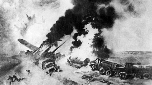 26 июня 1941 года, Белоруссия. Четвертый день Великой Отечественной войны. Небо над трассой Молодечно — Радошковичи заволокло черным дымом. Советские бомбардировщики ДБ-3Ф 207-го авиаполка наносят удары по немецкой механизированной колонне, рвущейся к Минску. В какой-то момент один из самолетов, охваченный пламенем, не пытается уйти в сторону или выброситься с парашютом, а резко меняет курс и пикирует прямо в гущу вражеской техники — цистерн с топливом и танков. Раздается мощный взрыв. Так родился один из главных символов героизма той войны — «огненный таран» капитана Николая Гастелло...