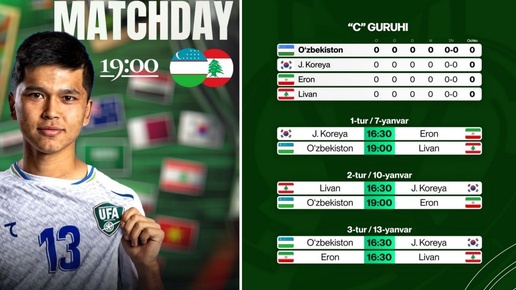 Бугун Ўзбекистон термаси Ливанга қарши майдонга тушади Саудия Арабистони яшил майдонларида 23 ёшгача бўлган футболчилар ўртасида Осиё кубоги старт олди. ⏱️Ўзбекистон–Ливан ўйини соат 19:00 да бошланади...