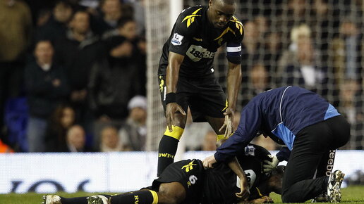 Полузащитник английского клуба "Болтон" Фабрис Муамба в концовке первого тайма в матче за выход в полуфинал Кубка Англии против лондонского "Тоттенхэм" почувствовал себя плохо и неожиданно упал на газон...