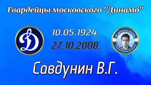Приветствую уважаемых болельщиков московского «Динамо»! 10 мая родился САВДУНИН ВЛАДИМИР ГРИГОРЬЕВИЧ Владимир Савдунин – знаменитый полузащитник московского «Динамо». Его козырями были не скорость и техника, а постоянное движение, физическая сила и, главное, пушечный, как тогда говорили, удар. Именно таким ударом в «девятку» забил он один из своих последних голов в ворота, приехавшего в Москву лондонского клуба «Арсенал». Савдунин Владимир Григорьевич родился 10 мая 1924 года в Москве. Отец Владимира – Григорий Яковлевич был шофером, работал в гараже Совета министров СССР...