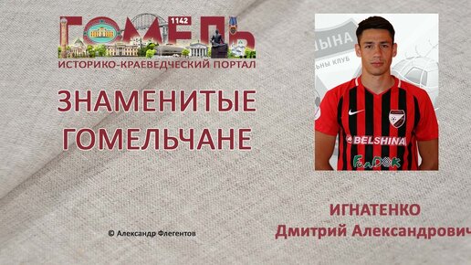 Дмитрий Александрович Игнатенко (01.02.1995, Гомель) — белорусский футболист, защитник мозырской «Славии». Карьеру начал в составе «Гомеля», с 2013 года играл за дубль. 13 июля 2014 года дебютировал в основном составе «Гомеля» в матче против «Нафтана», выйдя на замену на 89-й минуте. В конце сезона стал прочно выходить в стартовом составе клуба на позиции центрального защитника. В декабре 2014 года продлил контракт. Сезон-2015 начал на скамейке запасных, а с мая закрепился в качестве основного центрального защитника...