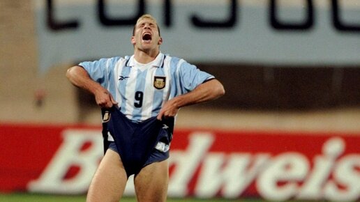 Мартин Палермо,забив гол в чемпионате Аргентины,подбежал к трибунам,и снял с себя футболку.Но видимо форварду этого показалось мало.Он решил снять ещё и трусы...На всех видео обзорах матча тогда,генеталии футболиста были закрыты пикселями.И это единственная фотография,которую я смог найти на просторах интернета.Но олды,я думаю помнят этот случай.Не так уж давно это и было...За подобные выходки,фанаты прозвали нападающего El Loco (сумашедший) Мартин Палермо...Голевая машина. Высокий и атлетичный...