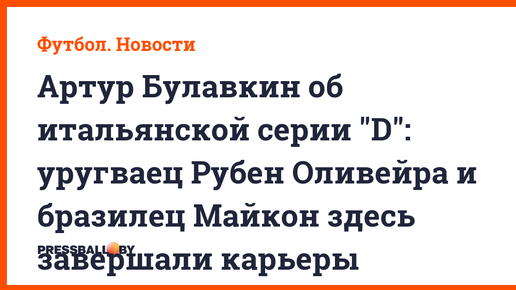 Артур Булавкин об итальянской серии "D": уругваец Рубен Оливейра и бразилец Майкон здесь завершали карьеры