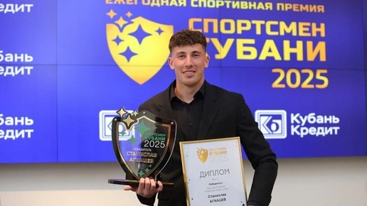 В Краснодаре объявили лауреата ежегодной премии «Спортсмен Кубани 2025» и вручили ему награду. Победителем стал чемпион России по футболу, вратарь клуба «Краснодар» и сборной России Станислав Агкацев. Футболист «быков» одержал победу в онлайн-голосовании за звание лучшего спортсмена Краснодарского края 2025 года. Во время церемонии ему вручили традиционный приз премии и ее символ — «Щит чемпиона», выполненный в клубных черно-зеленых цветах. Всего за номинантов премии было отдано более 32 000 голосов...