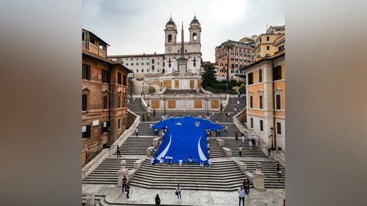 На Испанской лестнице в Риме растянули огромную футболку сборной Италии. Технический спонсор итальянской сборной изготовил 15-метровое полотно в виде домашней футболки сборной Италии, которое украсило одну из главных достопримечательностей Рима. Фотографии были опубликованы в социальных сетях с подписью: «Шедевр в самом сердце Рима». Таким образом сборная Италии потроллила испанцев перед очной встречей на Евро, накрыв в день матча знаменитую Испанскую лестницу футболкой «Скуадры Адзурры»...