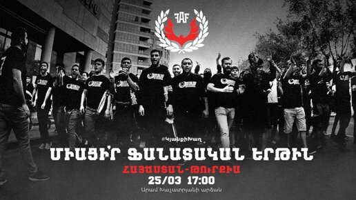 Фан-движение FAF (Первый армянский фронт) перед матчем Армения-Турция организует шествие болельщиков с площади Франции, которое завершится на Республиканском стадионе, сообщается на сайте инициативы. «Неважно, что вы будете болеть за нашу сборную с трибун, важно быть единым целым, проявлять веру и видеть на поле неизменную самоотдачу», — говорится в сообщении FAF. Движение призвало всех участников шествия прийти в черном, с шарфами и флагами национальной сборной или Армении. Матч сборных Армении и Турции состоится в Ереване 25 марта на Республиканском стадионе им...