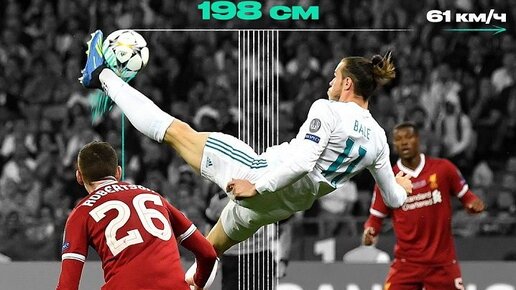 Во втором тайме финала ЛЧ между «Реалом» и «Ливерпулем» счет был 1:1, когда на замену вышел Гарет Бэйл. Через две минуты он сделал вот это. Мяч был на высоте около двух метров, до ворот было почти 14. После удара Бэйла он набрал скорость больше 60 км/ч и влетел в ворота Кариуса. И стал победным.