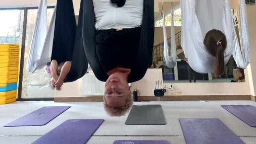 Гимнастика в гамаках. Вы такое видели? Мне когда сказали в гамаках, думаю что за ерунда, в голове сразу картинка, гамак из сетки, как у нас в саду висел. Думаю, нафиг надо. Не пойду..А когда все таки сходила, моему восторгу не было предела. Привет, мои дорогие друзья. С вами Веселая Маруся. И я продолжаю радоваться жизни, и приглашаю вас это сделать вместе со мной. Пригласили меня на мастер класс по этому самому АЭРОСТРЕТЧИНГУ. Честно , я даже слова такого не знала. И естественно не понимала о чем речь...