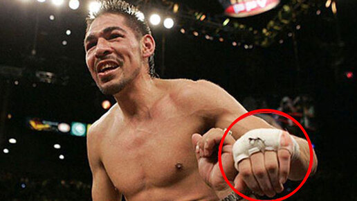 Боксер проводил бои с гипсом в перчатках. Возможно, это продолжалось очень долго
