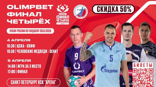 ГК «Зенит» приглашает на «Финал Четырех» Кубка России по гандболу🏆 Впервые в истории Санкт-Петербургу и гандбольному клубу «Зенит» доверено право провести OLIMPBET «Финал четырех» Кубка России по гандболу среди мужских команд🔥 В решающую стадию турнира пробились лучшие команды страны: «Зенит», ЦСКА, «Чеховские медведи» и «СКИФ», а это значит, что на протяжении двух дней на Крестовском острове будет царить невероятная атмосфера большого спортивного праздника!💪🏻 Помимо классной игры в исполнении...