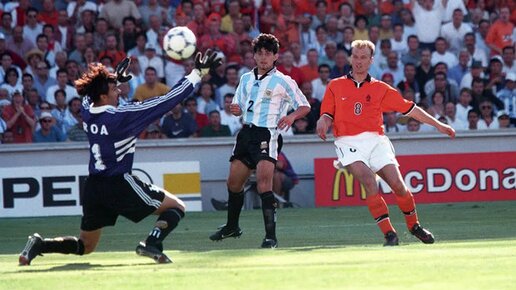 Чемпионат мира-1998 — готовая коллекция легендарных событий: мы до сих пор вспоминаем удаление Бекхэма за тычок Симеоне, третье место Хорватии с Давором Шукером и дубль Зидана головой. А также великий гол Нидерландов в ворота сборной Аргентины — когда рубка за выход в полуфинал приближалась к развязке, а счет был равным (1:1). Франк Де Бур разглядел маневр Денниса Бергкампа и вырезал идеальную диагональ. Бергкамп обработал пас, эффектно убрал Роберто Айялу и вонзил мяч в сетку. Потрясающее мастерство...