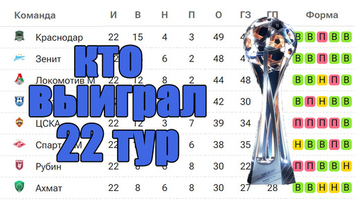 Привет всем. Сколько забили команды в 22-м туре? Кто больше, кто победил, как изменилась ситуация на вершине лучших бомбардиров и в таблице? Ахмат – Ростов 1:0. Касинтура на 33-й приносит три очка команде из Грозного. Таким образом, подопечные Станислава Черчесова не уступают 7-ю игру кряду (4 победы и 3 ничьи). В следующем туре домашняя игра с ЦСКА. ЦСКА – Динамо (Мх) 3:1 Энрике Кармо к 21-й минуте оформил гол + пас. «Армейцы» прервали трёхматчевую серию из поражений. Краснодар – Нижний Новгород 5:0 Джон Кордоба впервые в карьере оформил покер...