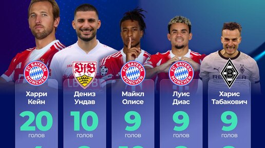 За исключением первого места 🏃 К середине января Кейн уже забил 20 голов в чемпионате. Ундав, Олисе, Диас и Табакович в плотной борьбе за топ-5. 🔥 — бистяры! 😃 Смотри Okko прямо сейчас!