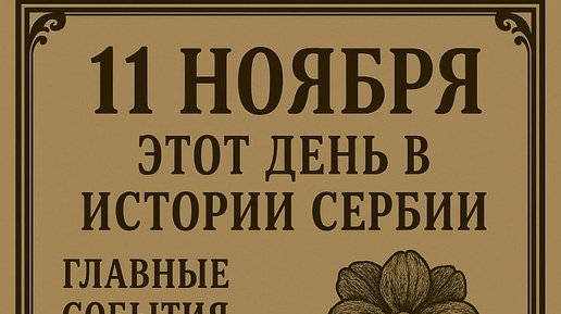 Этот день в истории Сербии — 11 ноября Главные события. День перемирия в Первой мировой войне — государственный праздник Сербии, отмечаемый 11 ноября с 2012 года. Символ праздника — цветок «Наталиева рамонда» в сочетании с лентой Албанской памятной медали; дата является выходным днём. Дни рождения. Выдающиеся деятели (Сербия). 1948 — родился Душан Прелевич (Преле), сербский певец, журналист и писатель (Белград). 1971 — родился Горан Джорович, сербский футболист и тренер, защитник сборной Югославии/Сербии...