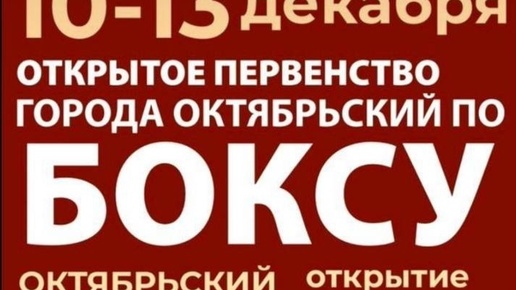 Во Дворце спорта Октябрьского пройдёт первенство города по боксу, посвящённое памяти заслуженного тренера России Ниля Габдуллина и мастера спорта России Тимура Габдуллина. Соревнования состоятся с 10 по 13 декабря....