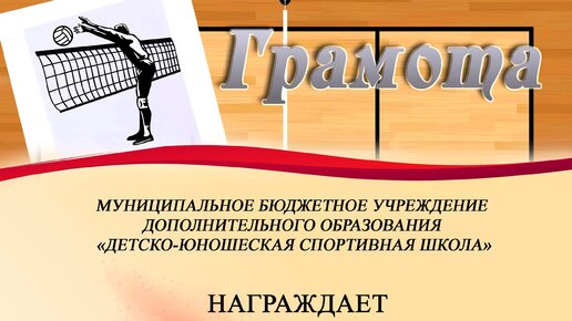 Представляю вашему вниманию шаблон грамоты для соревнований по волейболу. Пример использования шаблона: