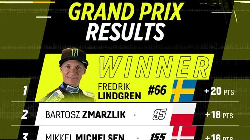 Очередной этап мировой серии Гран-При по спидвею завершился победой шведского райдера Фредрика Линдгрена