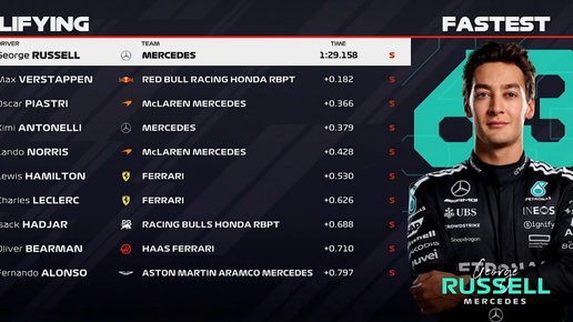 Результаты квалификации гран-при Сингапура: Так, шутки в сторону, но если Ферстаппен быстрее Макларенов и в Монце и в Сингапуре, то возможно чемпионат не настолько обречен, как мы думали. Будет обидно, если в конце для титула не хватит очков потерянных при таране Рассела в Барселоне и на первом круге Австрии с Атонелли. Осталось только ещё проверить темп на стандартных трассах по типу Остина. Джорджа же поздравляем с поулом, осталось завтра только не уехать в стену, как в предыдущие годы...