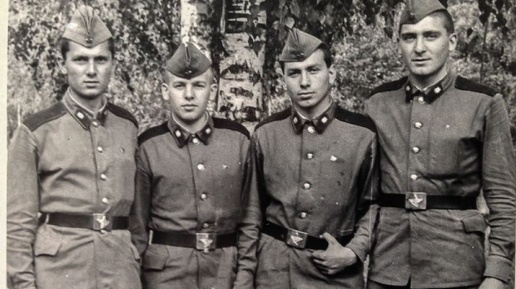 С призывом в армию мне несказанно повезло. Попал в одну часть вместе с лучшими друзьями. На заглавном фото я второй слева. Рядом со мною Саня Симонов (Симон), Костя (Кот) Кондопуло и Витя Локтев (Локоть). Мы все учились в одной группе в Краснодарском монтажном техникуме. С Локтем (он справа на снимке, самый здоровый) мы жили в одной комнате в общаге. А Кот с Симоном ребята местные, краснодарские. Весной 1973 года, когда все мы получили дипломы об окончания техникума и стали техниками-строителями, то от распределения отказались...