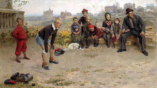 Картина Сергея Григорьева «Вратарь» знакома нам с детства. Её демонстрировали школьникам на уроках рисования, по ней писали сочинения, а её репродукции украшали многие детские книжки. Сюжет произведения кажется таким знакомым и родным, словно окунает нас в прошлое и заставляет снова переживать давно прошедшие тёплые осенние деньки. Картина создана Григорьевым в послевоенном 1949 году. На ней изображены дети, играющие в футбол на пустыре. Вместо оборудованного поля мы видим импровизированные ворота...