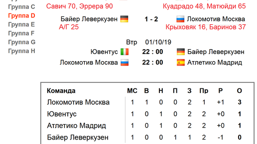 Групповой этап Лиги Чемпионов 2019/20. Таблицы групп A, B, C, D, расписание, результаты. 1 тур.