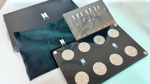 🍊 Merch Box №20. Групповое фото и монеты с посланиями: RM: Наше время, любовь и искренность. Джин: Счастье во всем мире. Шуга: От Agust D к Шуге. Джей-Хоуп: Надежда повсюду. Чимин: Вы моя муза. Ви: Фиолетовый длится вечно...