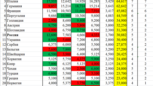 Таблица коэффициентов УЕФА после 2 тура группового этапа Еврокубков