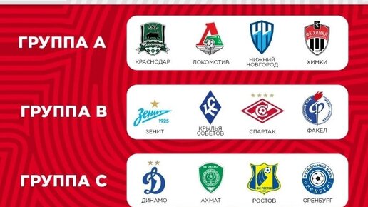 Формат Кубка России по футболу координально поменялся в сравнении с прошлыми розыгрышами. Теперь клубы играющие в РПЛ получили отдельную стадию, в которой они будут играть между собой. Команды были разделены на четыре группы из которых 1-2 место продвигаются дальше, а 3-е место отправляется в другую часть сетки. Формат Кубка достаточно запутанный и заслуживает отдельную статью, поэтому сейчас поговорим именно о жеребьёвке. Группа А. В группу А попали: Краснодар, Локомотив, Пари НН и Химки. Состав квартета довольно ровный, выделяется лишь Краснодар, который можно считать фаворитом...