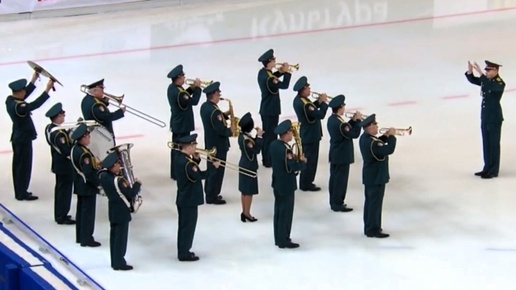 Военный оркестр Росгвардии открыл матч по хоккею с мячом в Хабаровске