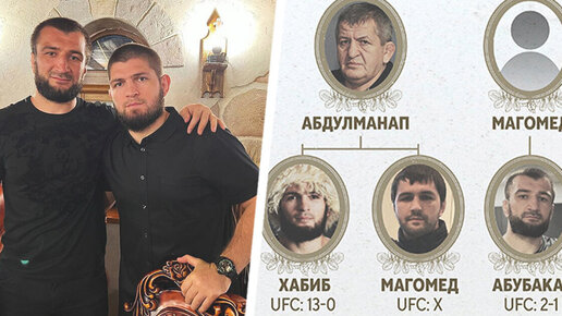 Разбираемся в семейной иерархии Нурмагомедовых. Хабиб Нурмагомедов завершил карьеру (и ушел из MMA), но помогает братьям и продвигает их в промоушенах. Как устроено их взаимодействие? (на инфографике представлены цифры на 14 января – у Умара Нурмагомедова рекорд 4-0) Магомед Нурмагомедов: не выступает среди профи, знает три языка, разбирался с обидчиками Хабиба по списку Родной брат Хабиба, который на два года его старше. Со второго класса школы Магомед Нурмагомедов жил в Кизилюрте у дяди, а потом учился в Махачкале и приезжал домой только по выходным...