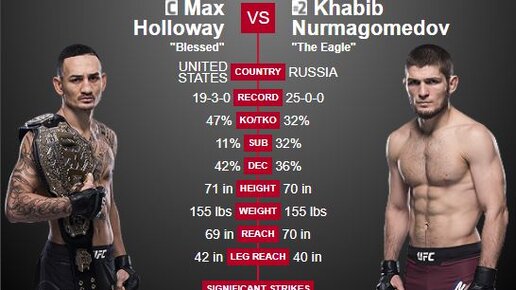 Бывший чемпион UFC в полулёгком весе Макс Холлоуэй считает, что обладатель титула UFC в лёгком весе Хабиб Нурмагомедов незаслуженно находится на первом месте в рейтинге UFC лучших бойцов вне зависимости от весовой категории...