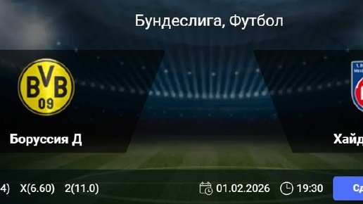 У «Боруссии» лучшая оборона в лиге — 10 «сухих» матчей в текущем сезоне. На домашнем стадионе их форма также не вызывает сомнений: 5 побед в 6 последних играх Бундеслиги и результативная серия из 5 матчей подряд с как минимум двумя забитыми мячами. Главная проблема Хайденхайма — оборона. «Хайденхайм» пропускает уже 22 матча подряд и делит с «Айнтрахтом» звание худшей защиты лиги, пропустив 42 гола...