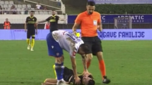 Жуткий эпизод случился в матче чемпионата Хорватии «Хайдук» (Сплит) — «Истра 1961», сообщает Sports.kz. На 90+1 минуте защитник «Хайдука» Звонимир Шарлия в борьбе с нападающим гостей Анте Эрцегом, пытаясь выбить мяч, сильно ударил ногой по лицу соперника. Сразу после грубого фола Шарлия жестом позвал на поле врачей и извинился перед Эрцегом. За этот эпизод нарушитель получил желтую карточку...