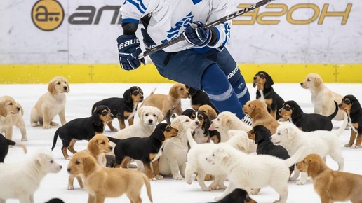 💙 Хоккейный клуб "Динамо-Алтай" провел тренировку вместе с пушистыми друзьями. Фото: Telegram-канал ХК "Динамо-Алтай"