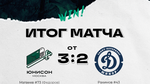 Предсезонное дерби двух столиц осталось за Москвой. ХК «Юнисон-Москва» обыграл МХК «Динамо-Юниор Санкт-Петербург» во втором матче серии.