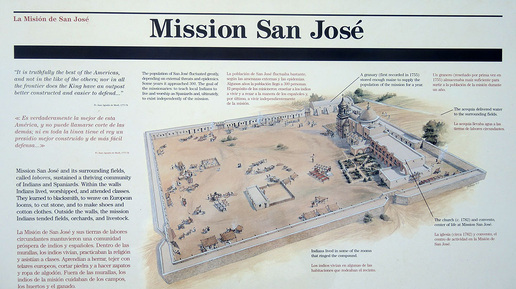 А теперь давайте заглянем не в музейные комнаты, а непосредственно в жилые комнаты, сохранившиеся в Миссии Сан-Хосе. Считается, что это самая влиятельная и мощная миссия. Миссия Сан-Хосе была основана в 1720 году братом Антонио Маргиль-де-Хесусом. На тот период в ней проживало более 300 человек, и поскольку она считалась крупнейшей в Техасе, её часто называли «Королевой миссий». По сравнению с другими миссиями она была настоящей крепостью. Комплекс находится в ведении Службы национальных парков...