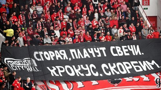 Активные болельщики московского «Спартака» посвятили перфоманс на четвёртом матче серии 1/4 финала плей-офф Континентальной хоккейной лиги (КХЛ) с магнитогорским «Металлургом» памяти жертв теракта в подмосковном «Крокус Сити Холле». Перед встречей хоккеисты провели минуту молчания в память о погибших, а также вышли с нашивками из траурных лент на свитерах. Фан-сектор красно-белых развернул чёрный баннер со словами «Сгорая, плачут свечи...