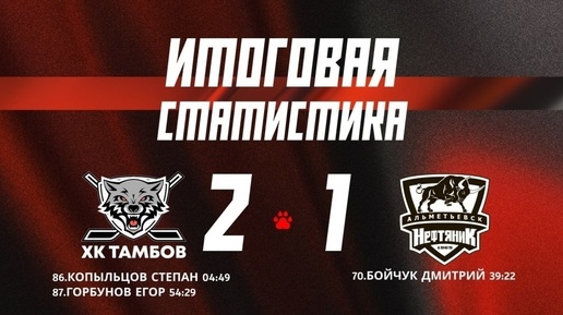 Волнующий и драматичный матч на площадке ЛДС «Кристалл» принёс тамбовским болельщикам настоящий праздник. «Волки» сумели одержать волевую победу над одним из лидеров ВХЛ альметьевским «Нефтяником». Начало игры было за хозяевами: уже на 5-й минуте Степан Копыльцов эффектным броском из круга вбрасывания открыл счёт. Несмотря на активный обмен атаками и голевые моменты с обеих сторон, преимущество «Тамбова» сохранялось до самого конца второго периода. Однако за минуту до перерыва гости сравняли счёт после рикошета...