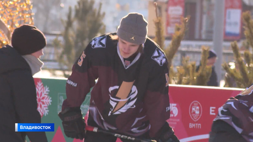 Мастер-класс от молодых звёзд хоккея на площади Борцов во Владивостоке