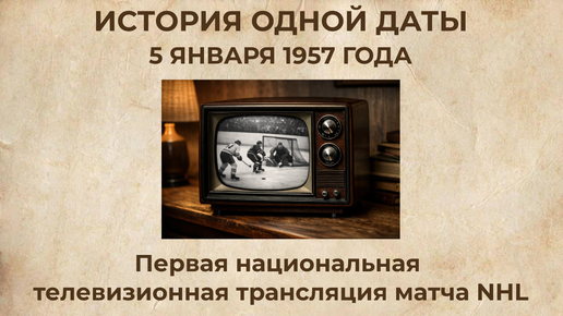 В начале 1950-х хоккей в США смотрели в основном на стадионах. Телевидение уже существовало, но национального вещания NHL не было — игры показывались лишь от случая к случаю, и охват был крайне ограничен. Массовая аудитория пока оставалась недосягаемой. В то же время в Канаде хоккей уже показывали по ТВ с 1952 года в рамках программы Hockey Night in Canada, но это касалось только канадских зрителей. Историческая дата — 5 января 1957 года Перелом произошёл 5 января 1957 года, когда в США состоялась первая национальная телевизионная трансляция матча NHL...