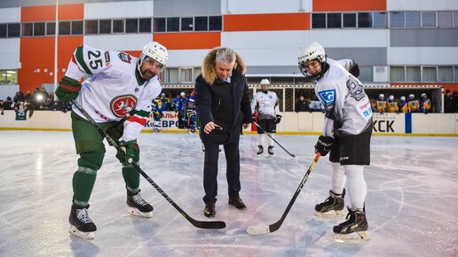 Ветераны хоккея против дворовых команд: Зарипов сыграл в Челнах