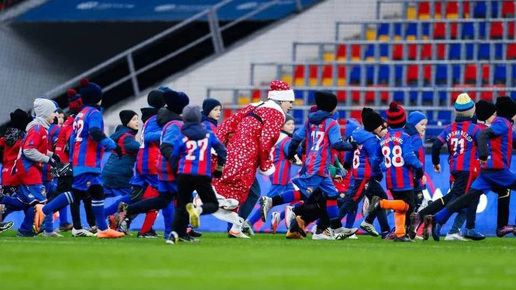 Матвей Кисляк и Филипп Воронин в костюме Деда Мороза сыграли с футболистами академии ЦСКА