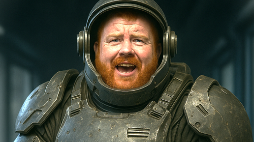 Крепкий, ярко-рыжий, с конопатым лицом, одетый в спортивный костюм при первой встрече. Его природный рыжий цвет волос настолько насыщенный, что выглядит почти невероятным. Ладонь у него широкая, мозолистая — типичная для человека, привыкшего к физической работе. Он известен в фракции как пример неудачного выбора класса — Космодесантник в условиях, когда во фракции нет ни звездолётов, ни десантных модулей, ни тяжёлой техники. До недавнего времени он даже не имел подходящего доспеха и был вынужден использовать устаревшее или вовсе неподходящее снаряжение...