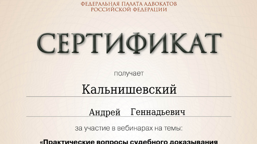 Андрей Геннадьевич Кальнишевский принял участие в онлайн-вебинаре по актуальным вопросам судебной и юридической практики