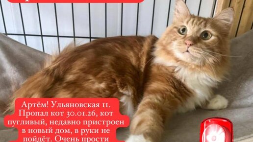 Пропал кот 30.01.26, кот пугливый, недавно пристроен в новый дом, в руки не пойдёт. Очень прости сообщить, если увидите его. 89147057522 89147900833