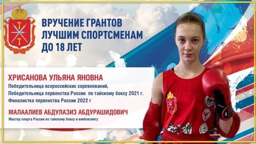 Спортсменка федерации единоборств по тайскому боксу Ульяна Хрисанова получила грант в размере 100 000 рублей от Виктора Дзюбы