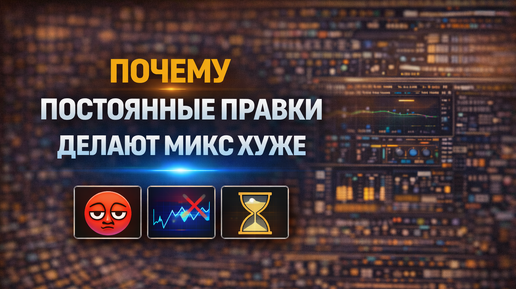 Микс стал другим — но не лучше. И чем больше правок — тем хуже результат. Это нормально. И вот почему. Главная проблема постоянных правок — потеря объективности. Через 30–60 минут: Ты начинаешь: И микс медленно уходит в сторону. Если ты крутишь ручки и не уверен, стало ли лучше — значит, слух уже устал. Микс — это система.