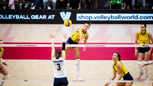 Заключительный игровой день чемпионата мира среди женских команд 2025 стартовал с бронзового финала. Япония и Бразилия между собой пытались поделить первый комплект наград. После полуфинальных баталий казалось, что этот поединок будет скучным и пройдёт без борьбы. Бразилия доминировала в первых двух партиях, за исключением небольшого рывка в середине второго сета. Похоже, южноамериканские девушки уже планировали примерять на себя бронзовые медали. Но Бразилия провалила старт третьего сета, что позволило японкам захватить инициативу...